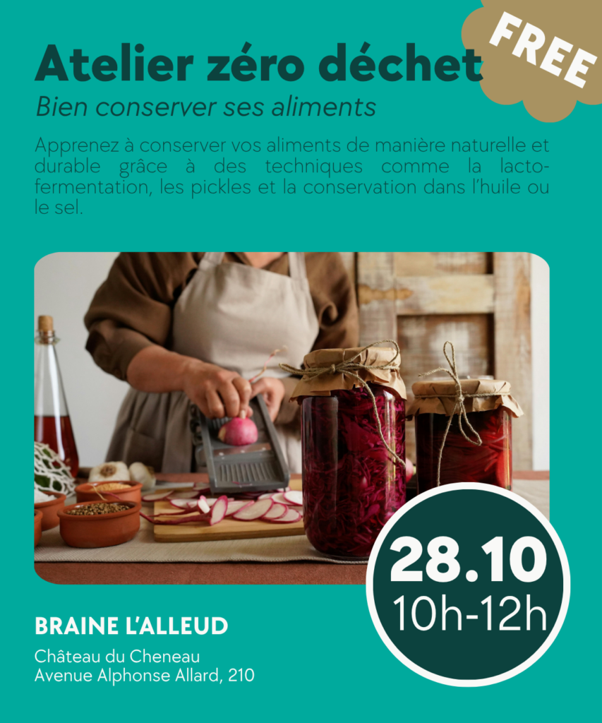 Plus d'infos via ce lien : https://www.braine-lalleud.be/agenda/atelier-diminuons-nos-dechets-lacto-fermentation?u=6f1d8b31cedd437783b527bbc733a916