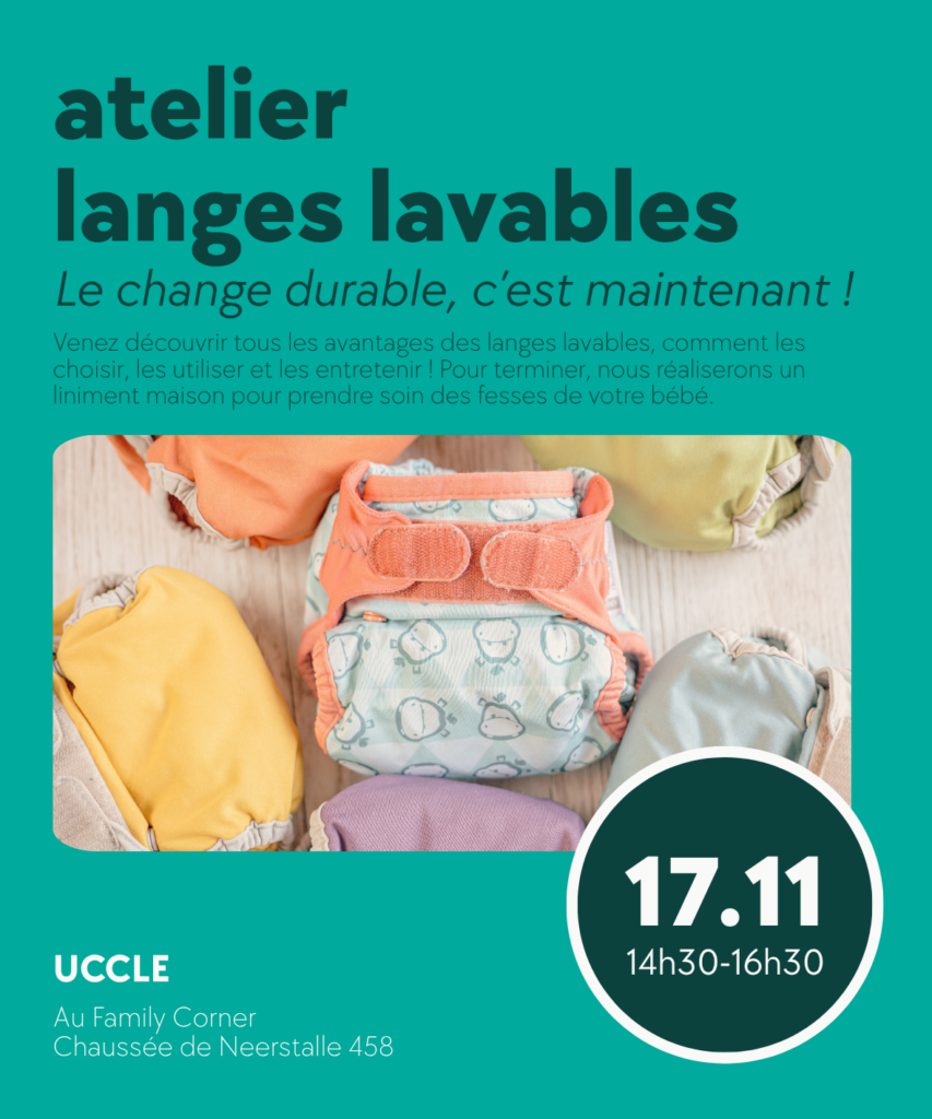Vous voulez en savoir plus sur les langes lavables ? Cet atelier est fait pour vous ! Venez découvrir tous les avantages des langes lavables, comment les choisir, les utiliser et les entretenir ! Pour terminer, nous réaliserons un liniment maison pour prendre soin des fesses de bébé. Prévoir un petit contenant pour repartir avec son produit fait maison.